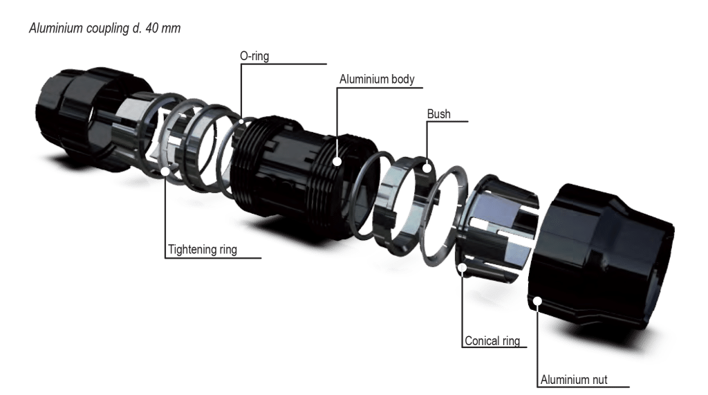 The fittings are made in painted, die-cast aluminium and are available in diameters: